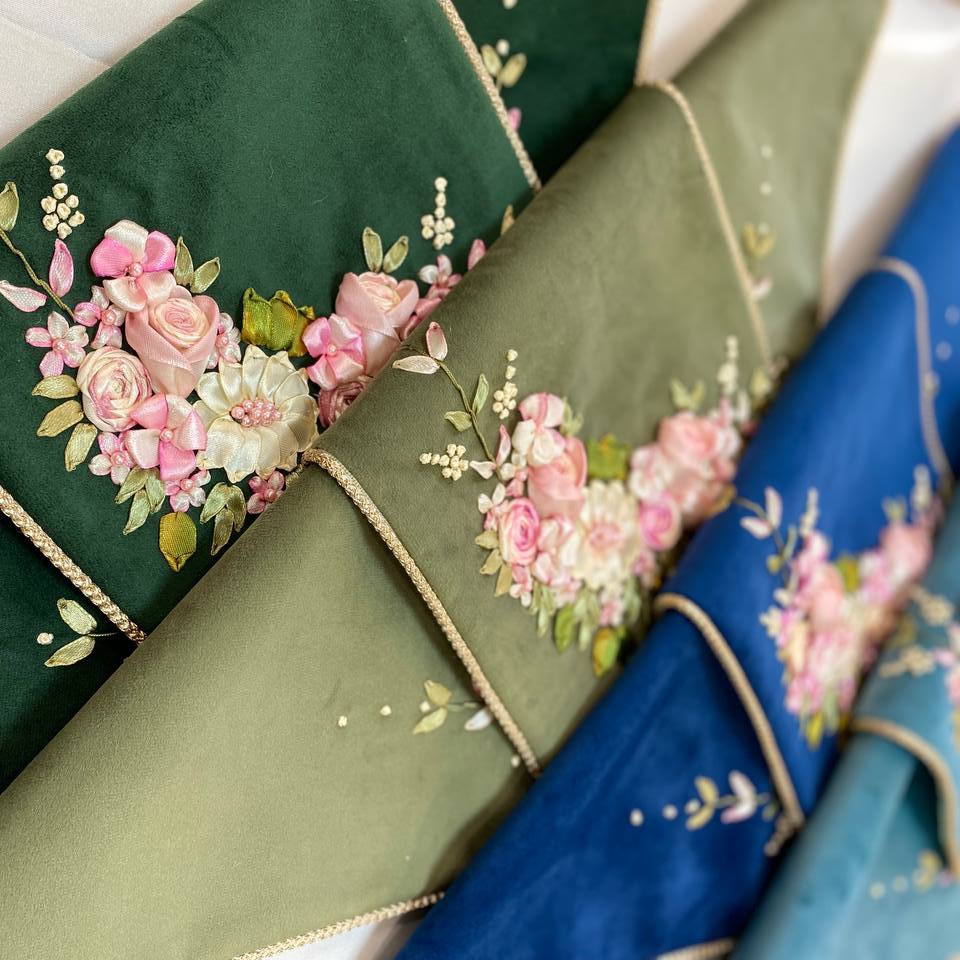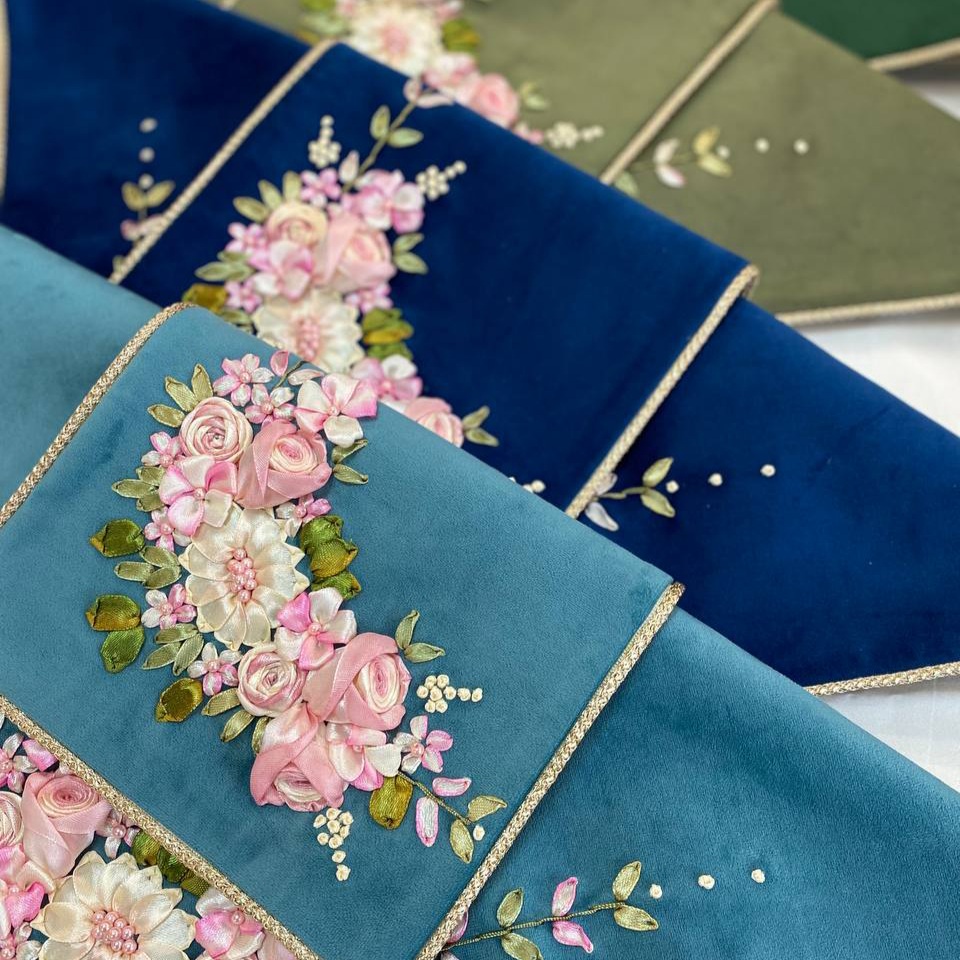 جانماز دو تکه ربان دوزی طرح دسته گل