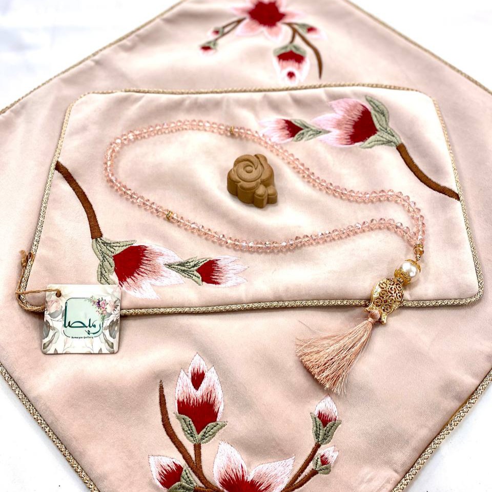جانماز دو تکه گلدوزی طرح گل ارکیده